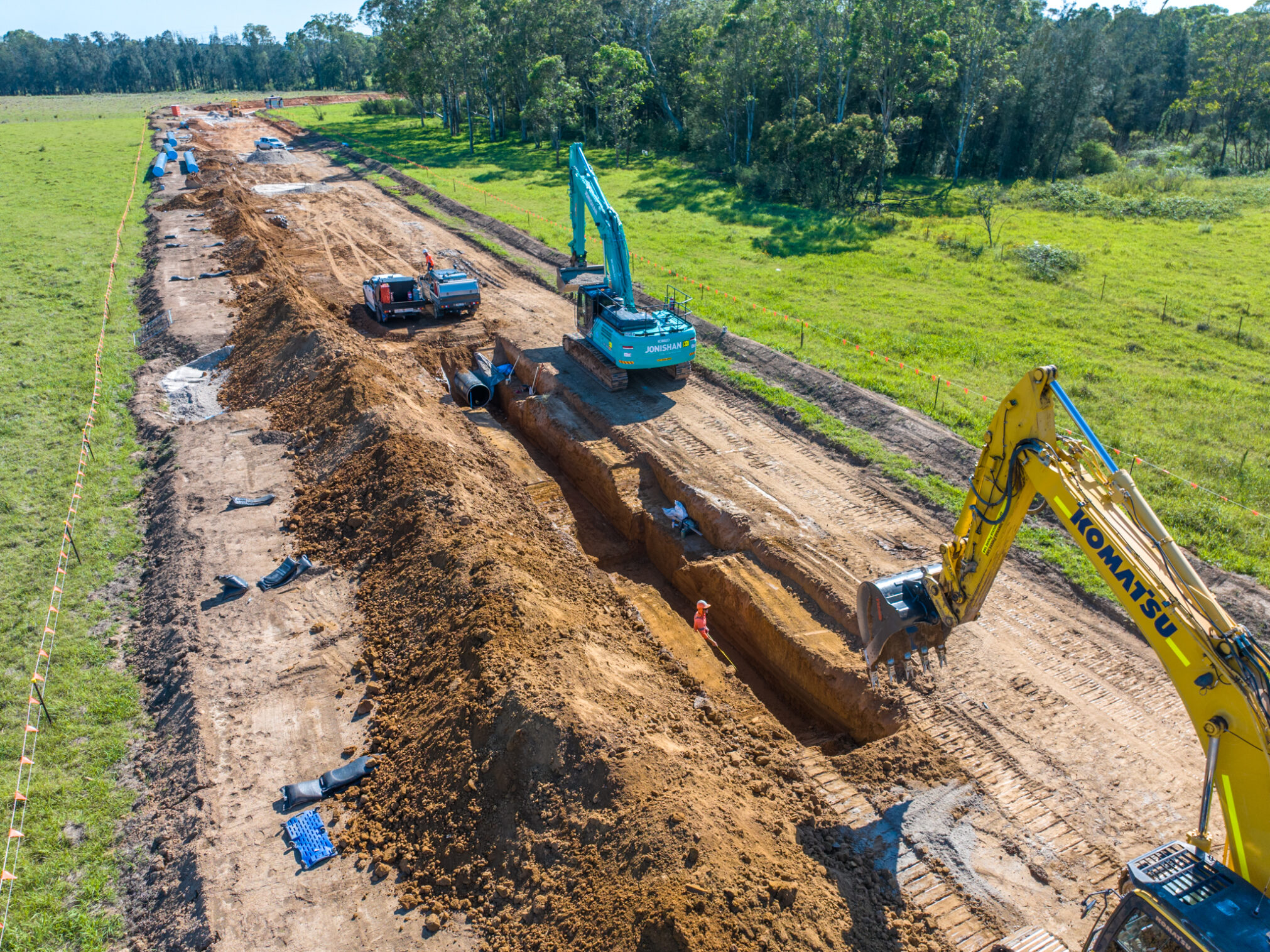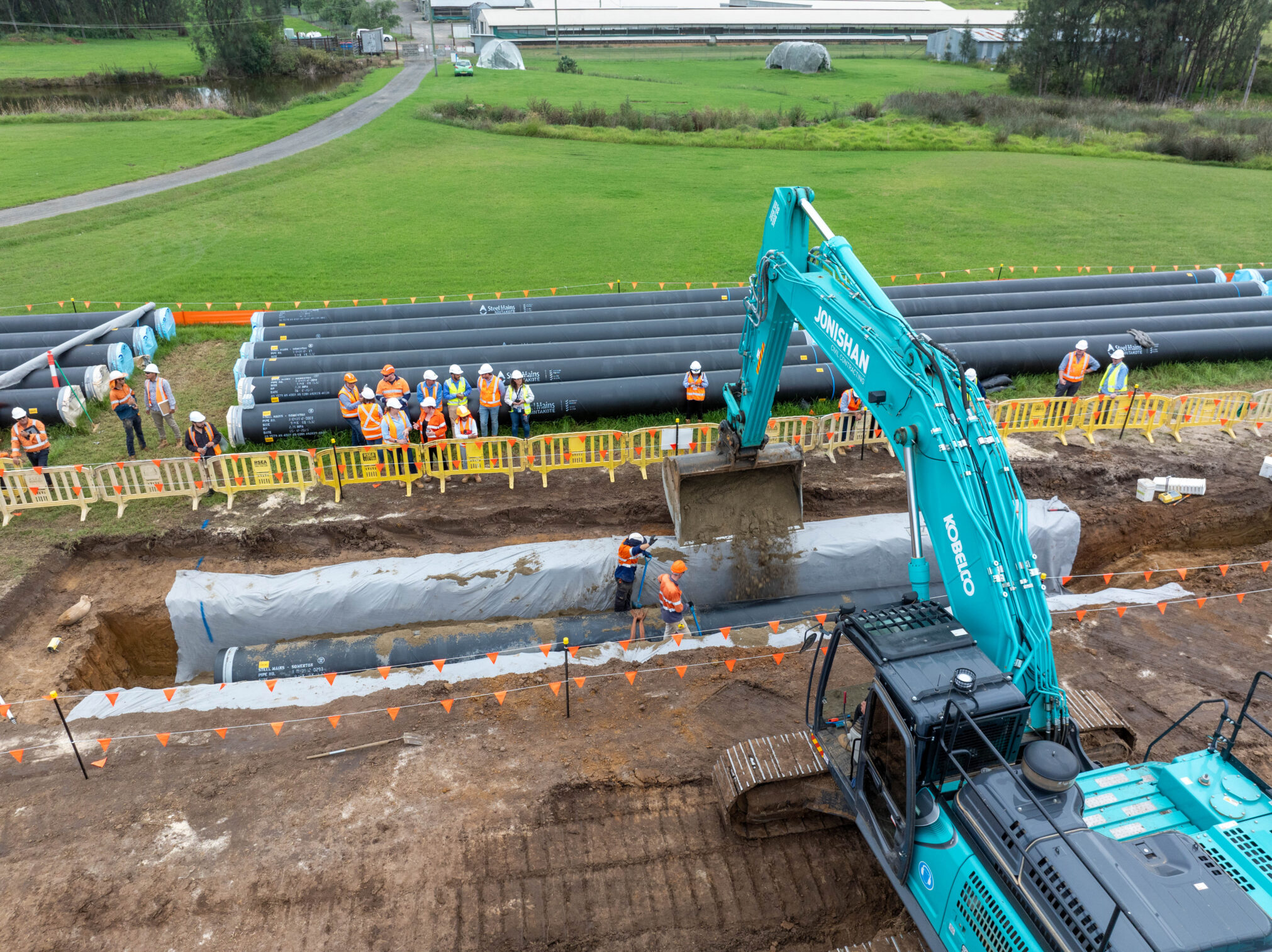 As a trusted Delivery Partner to John Holland, Jonishan is proud to be delivering 12 kilometres of 914 SCL pipeline infrastructure to support the future wastewater needs of the rapidly growing Western Sydney Aerotropolis. This major infrastructure forms part of a broader commitment to sustainable development in the region.